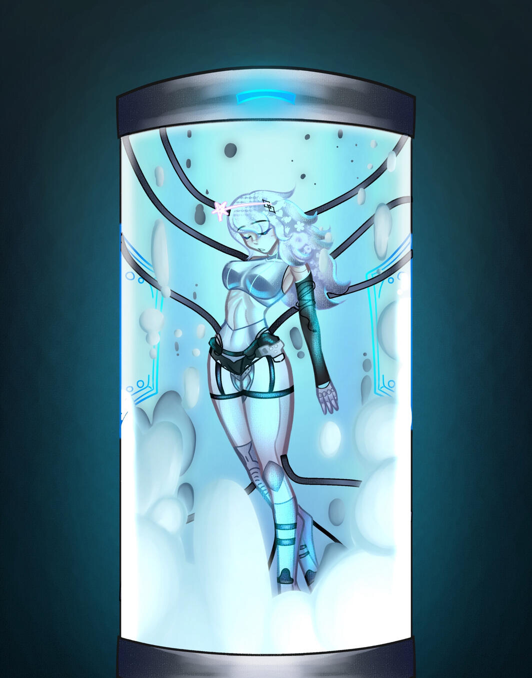 LORE;; == Koi used to be a scientist in a fallout shelter type lab, where she would work alongside her dad, while her mom was sick with an illness. She was trying to find any cure she could to help her mom. She was really into robotics and chemistry. Due to her outstanding work in the lab, she was offered with an opportunity to be apart of a test, her manager promised that it was just to help test some machinery and medicine. She took the offer, since she devoted herself to her job. They ended up putting her under anesthetics, and started to operate on her. They turned her into an android, at their own attempts to see if they could create an intelligent robot being. They placed her into a tube so they could monitor her vitals. She was somewhat conscious in this state, but bubble over with anger. With time she started to regain her strength and consciousness, and she broke out of her tube, and started to go on a rampage on everyone who agreed to do this to her, ultimately killing everyone in the lab. She stays down in the lab now, in the dark, not understanding what happened to her.